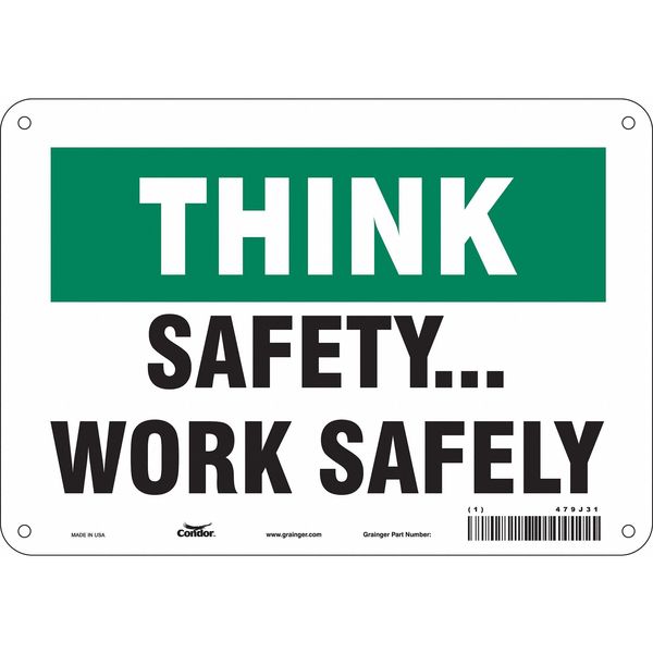 SKU G5836332Categories SafetyDescription Safety Sign, Vertical Rectangle, Number of Printed Sides 1, English, Sign Format Other Format, Sign Legend Safety...Work Safely, Sign Legend Background Color Green, White, Sign Legend Style Text Safety Sign, 7 in Height, 10 in Width, Aluminum, Vertical Rectangle, English, 479J31