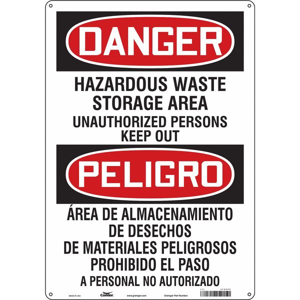 SKU G5161237Categories SafetyDescription Safety Sign, Vertical Rectangle, Number of Printed Sides 1, English, Spanish, Sign Format Traditional OSHA, Sign Legend Hazardous Waste Storage Area Unauthorized Persons Keep Out/Area De Almacenamiento De Desechos De Materiales Peligrosos. Prohibido El Paso A Personal No Autorizado, Sign Legend Background Color White, Sign Legend Style TextgraingerSKU: 472P92, mscSKU: , zoro_no: G5161237, mongo_id: 65bbe7933aaddbd5a90a2010