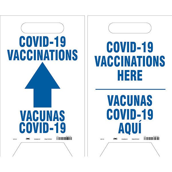 SKU G300410872Categories SafetyDescription Floor Sign, Height 20 in, Width 12 in, Sign Material Plastic, Header No Header, Legend Covid-19 Vaccinations Vacunas Covid-19 (Up Arrow) Covid-19 Vaccinations Here Vacunas Covid-19 Aqui, Printed Language English, Spanish$35.69 / eachWeb price