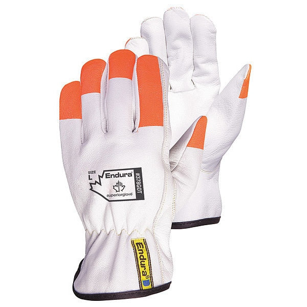Gloves, Orange/White, PK12SKU G8351884Categories SafetyDescription Leather Gloves, Hand Protection Style Glove, Additional Hazard Protection None, Leather Glove Style Drivers, Cut-Resistance Coverage Not Tested, ANSI/ISEA Cut Level Not Tested, Finger Coverage Full Finger, Stitching Material Cotton/Polyester, Leather Coverage Style Full Leather, Glove Length 9 1/4 in, Glove Hand Style Left and Right, Thumb Style Keystone, Cuff Style Safety, Glove Liner Material Unlined, Leather Grade Standard, Oil-Resistant No, Minimum Temperature Not Rated, Package Quantity 12graingerSKU: 55ND50, mscSKU: , zoro_no: G8351884, mongo_id: 65bbe7843aaddbd5a909db19