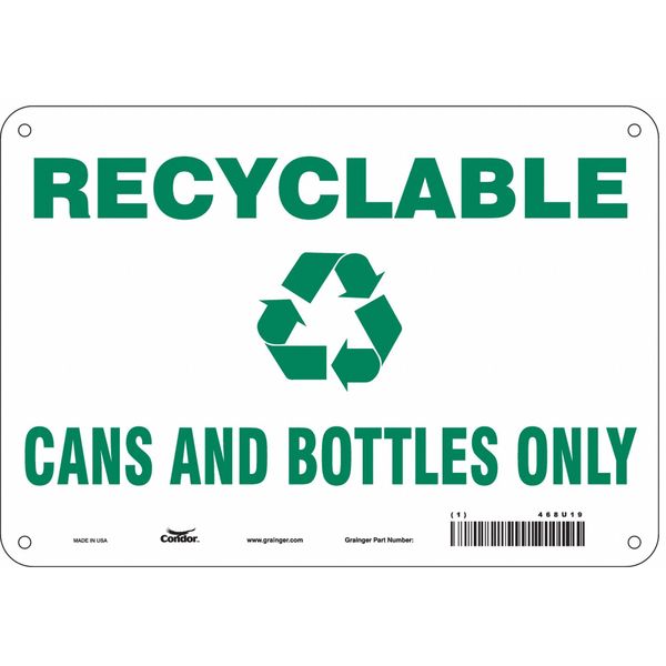 Safety Sign, 7 in Height, 10 in Width, Aluminum, Vertical Rectangle, English, 468U19SKU G5562501Categories SafetyDescription Safety Sign, Vertical Rectangle, Number of Printed Sides 1, English, Sign Format Other Format, Sign Legend Recyclable Cans And Bottles Only, Sign Legend Background Color White, Sign Legend Style Symbol and TextgraingerSKU: 468U19, mscSKU: , zoro_no: G5562501, mongo_id: 65bbe7b93aaddbd5a90b0688