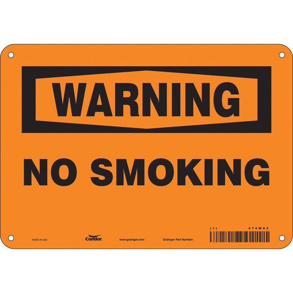 SKU G5258823Categories SafetyDescription Safety Sign, Vertical Rectangle, Number of Printed Sides 1, English, Sign Format Traditional OSHA, Sign Legend No Smoking, Sign Legend Background Color Orange, Sign Legend Style TextgraingerSKU: 474W62, mscSKU: , zoro_no: G5258823, mongo_id: 65bbe7b93aaddbd5a90b0672