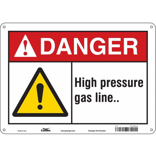 Safety Sign, 10 in Height, 14 in Width, Aluminum, Horizontal Rectangle, English, 476C09SKU G5795181Categories SafetyDescription Safety Sign, Horizontal Rectangle, Number of Printed Sides 1, English, Sign Format ANSI/OSHA Format, Sign Legend High Pressure Gas Line., Sign Legend Background Color White, Sign Legend Style Symbol and TextgraingerSKU: 476C09, mscSKU: , zoro_no: G5795181, mongo_id: 65bbe7b93aaddbd5a90b056e