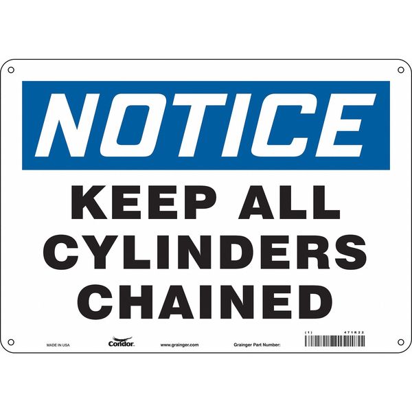 Safety Sign, 10 in Height, 14 in Width, Aluminum, Horizontal Rectangle, English, 471R22SKU G5611197Categories SafetyDescription Safety Sign, Horizontal Rectangle, Number of Printed Sides 1, English, Sign Format Traditional OSHA, Sign Legend Keep All Cylinders Chained, Sign Legend Background Color White, Sign Legend Style TextgraingerSKU: 471R22, mscSKU: , zoro_no: G5611197, mongo_id: 65bbe7b93aaddbd5a90b0592