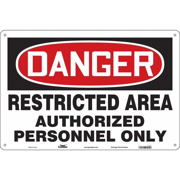 SKU G5252733Categories SafetyDescription Safety Sign, Horizontal Rectangle, Number of Printed Sides 1, English, Sign Format Traditional OSHA, Sign Legend Restricted Area Authorized Personnel Only, Sign Legend Background Color White, Sign Legend Style TextgraingerSKU: 472R94, mscSKU: , zoro_no: G5252733, mongo_id: 65bbe7b93aaddbd5a90b0475