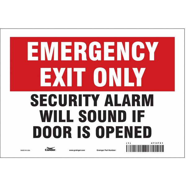 Safety Sign, 7 in Height, 10 in Width, Vinyl, Vertical Rectangle, English, 473F31SKU G5504018Categories SafetyDescription Safety Sign, Vertical Rectangle, Number of Printed Sides 1, English, Sign Legend Security Alarm Will Sound If Door Is Opened, Sign Legend Background Color Red, White, Sign Legend Style TextgraingerSKU: 473F31, mscSKU: , zoro_no: G5504018, mongo_id: 65bbe7b93aaddbd5a90b047c