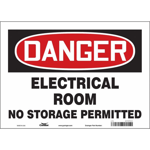 SKU G6039728Categories SafetyDescription Safety Sign, Horizontal Rectangle, Number of Printed Sides 1, English, Sign Format Traditional OSHA, Sign Legend Electrical Room No Storage Permitted, Sign Legend Background Color White, Sign Legend Style TextgraingerSKU: 475T23, mscSKU: , zoro_no: G6039728, mongo_id: 65bbe7b93aaddbd5a90b060b