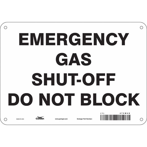 Chemical Sign, 10"W, 7" H, 0.032" Thickness, 475W48SKU G5884203Categories SafetyDescription Chemical Sign, Vertical Rectangle, Number of Printed Sides 1, English, Sign Legend Emergency Gas Shut-Off Do Not Block, Sign Legend Background Color White, Sign Legend Style TextgraingerSKU: 475W48, mscSKU: , zoro_no: G5884203, mongo_id: 65bbe7b93aaddbd5a90b0631