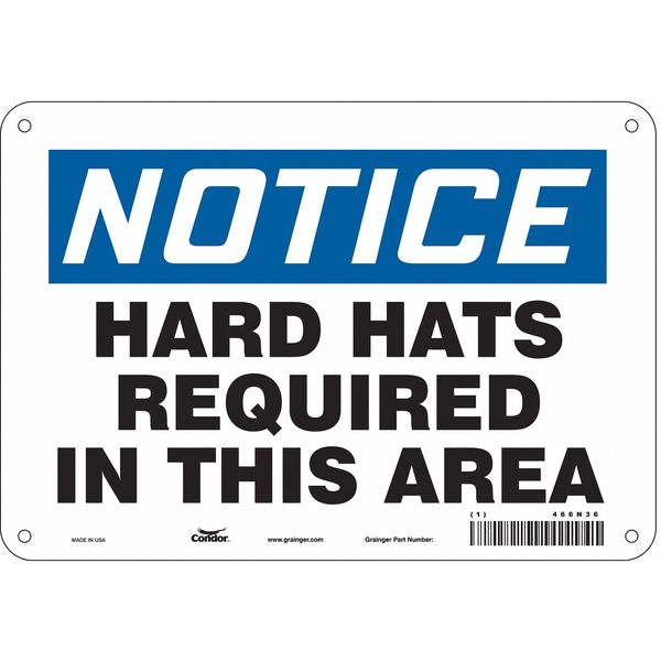 Safety Sign, 7 in Height, 10 in Width, Aluminum, Vertical Rectangle, English, 466N36SKU G5205860Categories SafetyDescription Safety Sign, Vertical Rectangle, Number of Printed Sides 1, English, Sign Format Traditional OSHA, Sign Legend Hard Hats Required In This Area, Sign Legend Background Color White, Sign Legend Style TextgraingerSKU: 466N36, mscSKU: , zoro_no: G5205860, mongo_id: 65bbe7b93aaddbd5a90b0565
