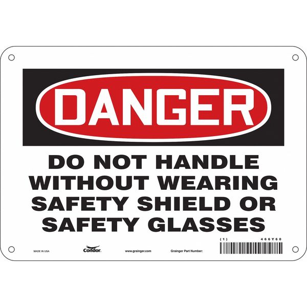 Safety Sign, 7 in Height, 10 in Width, Aluminum, Vertical Rectangle, English, 466Y60SKU G5870361Categories SafetyDescription Safety Sign, Vertical Rectangle, Number of Printed Sides 1, English, Sign Format Traditional OSHA, Sign Legend Do Not Handle Without Wearing Safety Shield Or Safety Glasses, Sign Legend Background Color White, Sign Legend Style TextgraingerSKU: 466Y60, mscSKU: , zoro_no: G5870361, mongo_id: 65bbe7b93aaddbd5a90b0635