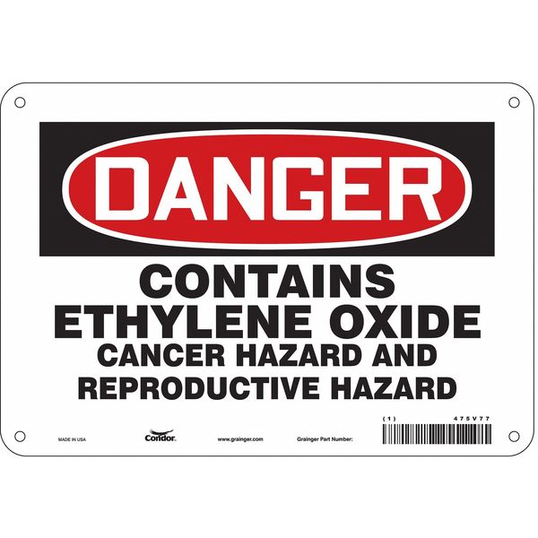 Safety Sign, 7 in Height, 10 in Width, Aluminum, Vertical Rectangle, English, 475V77SKU G5837750Categories SafetyDescription Safety Sign, Vertical Rectangle, Number of Printed Sides 1, English, Sign Format Traditional OSHA, Sign Legend Contains Ethylene Oxide Cancer Hazard And Reproductive Hazard, Sign Legend Background Color White, Sign Legend Style TextgraingerSKU: 475V77, mscSKU: , zoro_no: G5837750, mongo_id: 65bbe7b93aaddbd5a90b0649