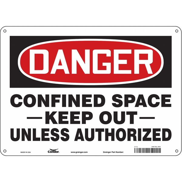 Safety Sign, 10 in Height, 14 in Width, Aluminum, Horizontal Rectangle, English, 465L58SKU G5077742Categories SafetyDescription Safety Sign, Horizontal Rectangle, Number of Printed Sides 1, English, Sign Format Traditional OSHA, Sign Legend Confined Space -Keep Out- Unless Authorized, Sign Legend Background Color White, Sign Legend Style TextgraingerSKU: 465L58, mscSKU: , zoro_no: G5077742, mongo_id: 65bbe7b93aaddbd5a90b0604