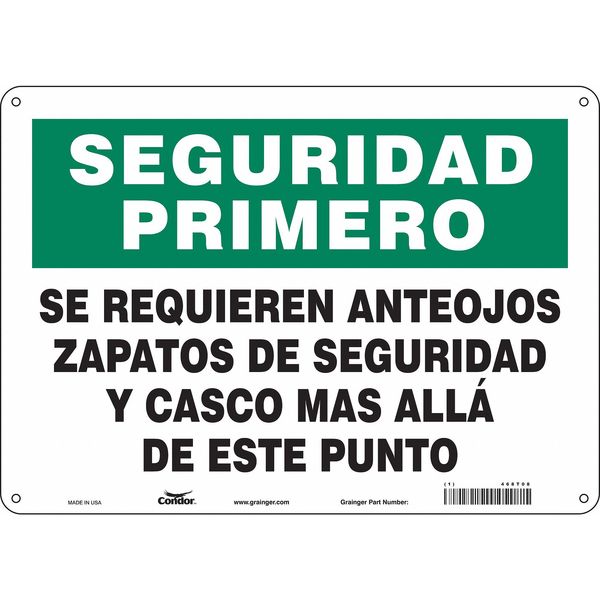 Safety Sign, 10 in Height, 7 in Width, Aluminum, Horizontal Rectangle, English, Spanish, 469C51