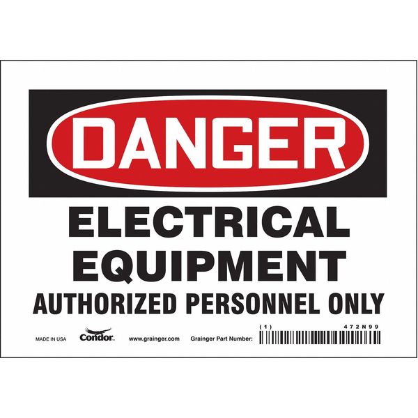Safety Sign, 5 in Height, 7 in Width, Vinyl, Horizontal Rectangle, English, 472N99SKU G5094743Categories SafetyDescription Safety Sign, Horizontal Rectangle, Number of Printed Sides 1, English, Sign Format Traditional OSHA, Sign Legend Electrical Equipment Authorized Personnel Only, Sign Legend Background Color White, Sign Legend Style TextgraingerSKU: 472N99, mscSKU: , zoro_no: G5094743, mongo_id: 65bbe7b93aaddbd5a90b0518