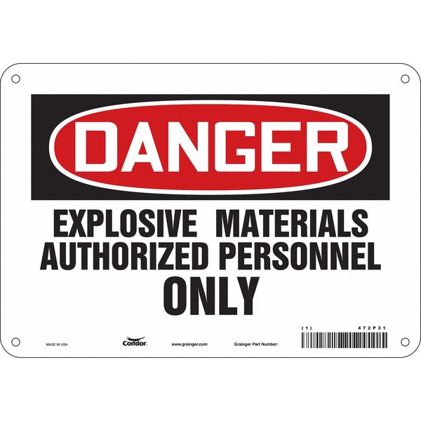 Safety Sign, 7 in Height, 10 in Width, Aluminum, Vertical Rectangle, English, 472P31SKU G5553639Categories SafetyDescription Safety Sign, Vertical Rectangle, Number of Printed Sides 1, English, Sign Format Traditional OSHA, Sign Legend Explosive Materials Authorized Personnel Only, Sign Legend Background Color White, Sign Legend Style TextgraingerSKU: 472P31, mscSKU: , zoro_no: G5553639, mongo_id: 65bbe7b93aaddbd5a90b05de