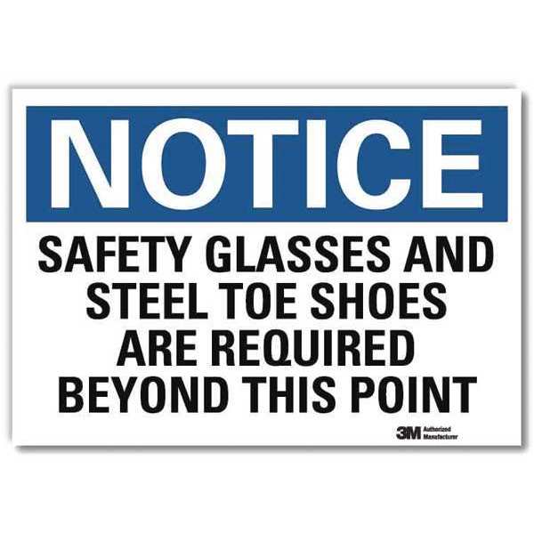 SKU G1814316Categories SafetyDescription Notice Sign, Horizontal Rectangle, Number of Printed Sides 1, English, Sign Format Traditional OSHA, Sign Legend Safety Glasses And Steel Toe Shoes Are Required Beyond This Point, Sign Legend Background Color White, Sign Legend Style TextgraingerSKU: 34JW51, mscSKU: , zoro_no: G1814316, mongo_id: 65bbe7b93aaddbd5a90b0213