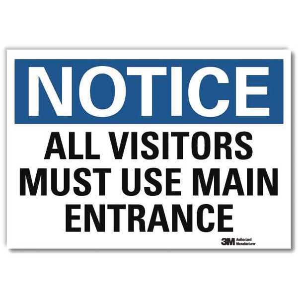 Notice Sign, 5 in H, 7 in W, Reflective Sheeting, Horizontal Rectangle, English, U5-1067-RD_7X5SKU G2764688Categories SafetyDescription Notice Sign, Horizontal Rectangle, Number of Printed Sides 1, English, Sign Legend All Visitors Must Use Main Entrance, Sign Legend Background Color White, Sign Legend Style TextgraingerSKU: 34JJ11, mscSKU: , zoro_no: G2764688, mongo_id: 65bbe7b83aaddbd5a90aff9a