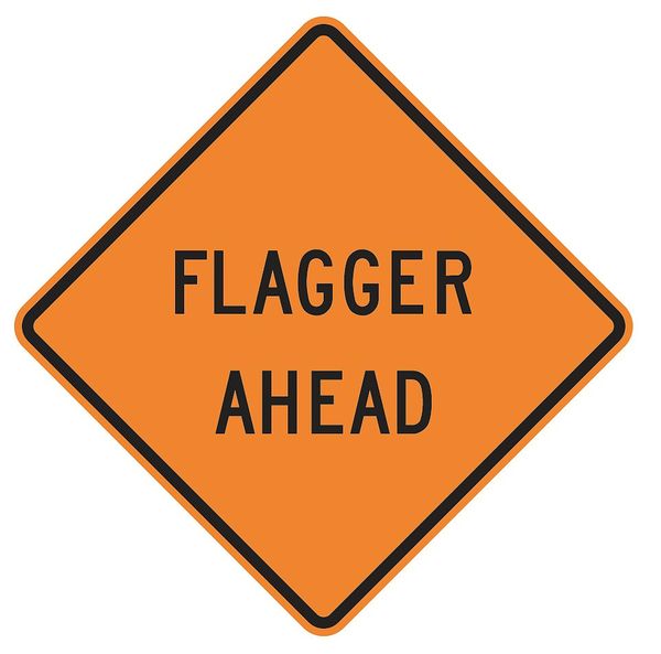 Flagger Ahead Traffic Sign, 30 in Height, 30 in Width, Aluminum, Diamond, English