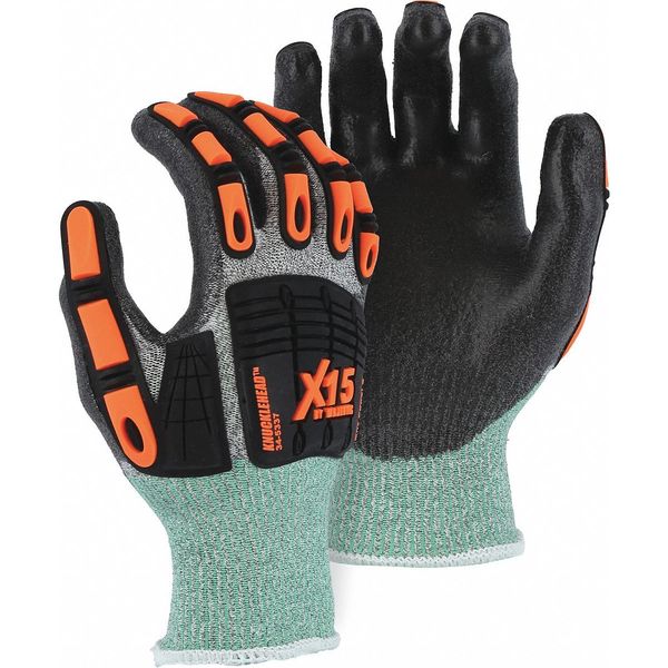 Hi-Vis Cut Resistant Impact Gloves, A5 Cut Level, Uncoated, L, 1 PR
