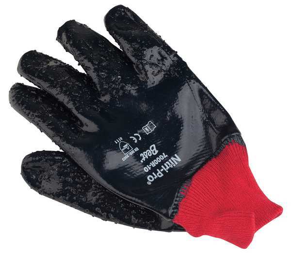 Nitrile Coated Gloves, Full Coverage, Black/Red, L, PR