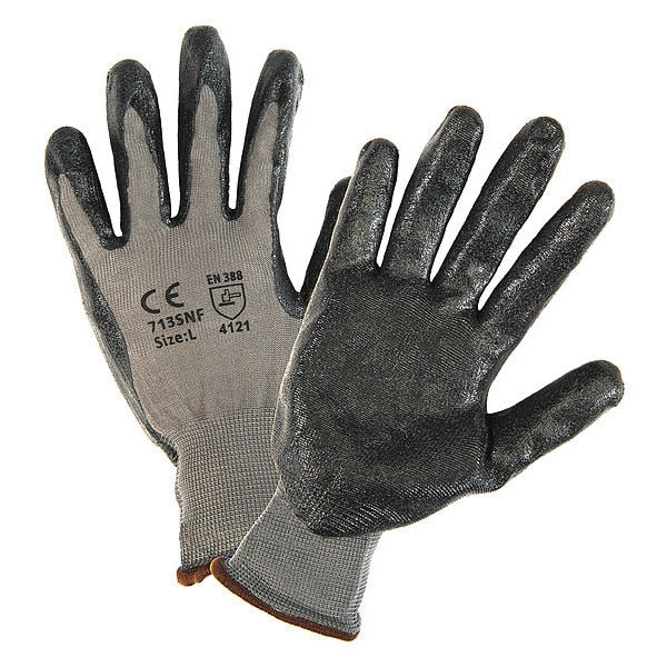 Foam Nitrile Hi-Vis Coated Gloves, Palm Coverage, Black/Orange, L, 12PK