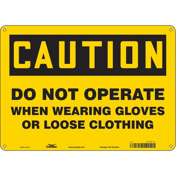 Safety Sign, 10 in Height, 14 in Width, Aluminum, Horizontal Rectangle, English, 466P11SKU G5609261Categories SafetyDescription Safety Sign, Horizontal Rectangle, Number of Printed Sides 1, English, Sign Format Traditional OSHA, Sign Legend Do Not Operate When Wearing Gloves Or Loose Clothing, Sign Legend Background Color Yellow, Sign Legend Style TextgraingerSKU: 466P11, mscSKU: , zoro_no: G5609261, mongo_id: 65bbe78f9a749db822742620