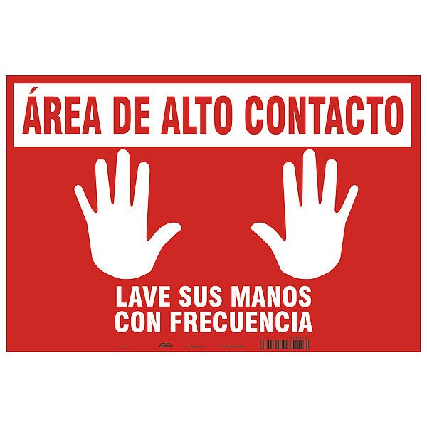 SKU G8514108Categories SafetyDescription Spanish Area De Alto Contacto Floor Sign, Sign Subject Matter Wash Hands, Height 14 in, Width 18 in, Sign Material Vinyl, Sign Mounting Style Adhesive Floor, Header Área De Alto Contacto, Legend Lave Sus Manos Con Frecuencia, Printed Language Spanish, Sign Shape Rectangle$39.36 / eachWeb price