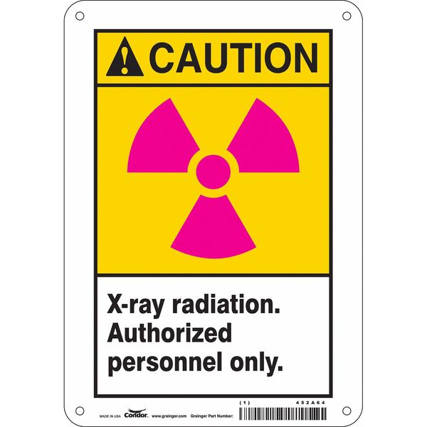 Radiation Sign, 10 in H, 7 in W, Aluminum, Horizontal Rectangle, 452A64SKU G5863249Categories SafetyDescription Radiation Sign, Horizontal Rectangle, Number of Printed Sides 1, English, Sign Format ANSI/OSHA Format, Sign Legend X-Ray Radiation. Authorized Personnel Only., Sign Legend Background Color White, Yellow, Sign Legend Style Symbol and TextgraingerSKU: 452A64, mscSKU: , zoro_no: G5863249, mongo_id: 65bbe7649a749db8227340e6