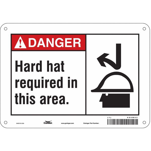 Safety Sign, 7 in Height, 10 in Width, Aluminum, Vertical Rectangle, English, 466M83SKU G5499921Categories SafetyDescription Safety Sign, Vertical Rectangle, Number of Printed Sides 1, English, Sign Format ANSI/OSHA Format, Sign Legend Hard Hat Required In This Area., Sign Legend Background Color White, Sign Legend Style Symbol and TextgraingerSKU: 466M83, mscSKU: , zoro_no: G5499921, mongo_id: 65bbe7649a749db8227340c4