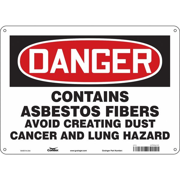 SKU G5886279Categories SafetyDescription Safety Sign, Horizontal Rectangle, Number of Printed Sides 1, English, Sign Format Traditional OSHA, Sign Legend Contains Asbestos Fibers Avoid Creating Dust Cancer And Lung Hazard, Sign Legend Background Color White, Sign Legend Style TextgraingerSKU: 479L31, mscSKU: , zoro_no: G5886279, mongo_id: 65bbe7649a749db8227340e9