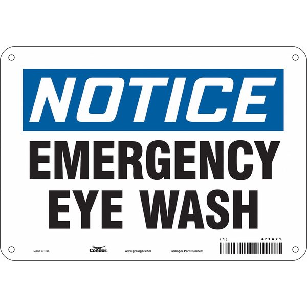 Safety Sign, 7 in Height, 10 in Width, Aluminum, Vertical Rectangle, English, 471A71SKU G5257119Categories SafetyDescription Safety Sign, Vertical Rectangle, Number of Printed Sides 1, English, Sign Format Traditional OSHA, Sign Legend Emergency Eye Wash, Sign Legend Background Color White, Sign Legend Style TextgraingerSKU: 471A71, mscSKU: , zoro_no: G5257119, mongo_id: 65bbe7649a749db822734129