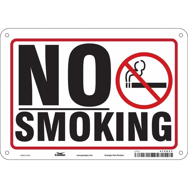 Safety Sign, 7" H, 10" W, Vertical Rectangle, English, 474D23SKU G5870002Categories SafetyDescription Safety Sign, Vertical Rectangle, Number of Printed Sides 1, English, Sign Format Other Format, Sign Legend No Smoking, Sign Legend Background Color White, Sign Legend Style Symbol and TextgraingerSKU: 474D23, mscSKU: , zoro_no: G5870002, mongo_id: 65bbe7649a749db82273406e