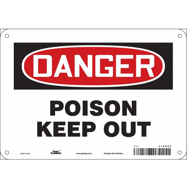 SKU G5832150Categories SafetyDescription Safety Sign, Vertical Rectangle, Number of Printed Sides 1, English, Sign Format Traditional OSHA, Sign Legend Poison Keep Out, Sign Legend Background Color White, Sign Legend Style TextgraingerSKU: 476D03, mscSKU: , zoro_no: G5832150, mongo_id: 65bbe7649a749db82273418d