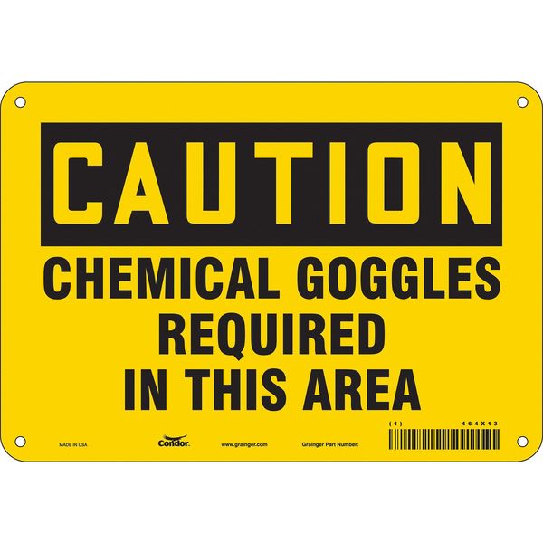 Safety Sign, 7 in Height, 10 in Width, Aluminum, Vertical Rectangle, English, 464X13SKU G5861873Categories SafetyDescription Safety Sign, Vertical Rectangle, Number of Printed Sides 1, English, Sign Format Traditional OSHA, Sign Legend Chemical Goggles Required In This Area, Sign Legend Background Color Yellow, Sign Legend Style TextgraingerSKU: 464X13, mscSKU: , zoro_no: G5861873, mongo_id: 65bbe7649a749db82273404d