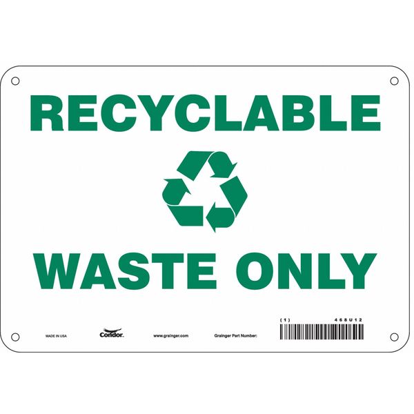 Safety Sign, 7 in Height, 10 in Width, Aluminum, Vertical Rectangle, English, 468U12SKU G5577798Categories SafetyDescription Safety Sign, Vertical Rectangle, Number of Printed Sides 1, English, Sign Legend Recyclable Waste Only, Sign Legend Background Color White, Sign Legend Style Symbol and TextgraingerSKU: 468U12, mscSKU: , zoro_no: G5577798, mongo_id: 65bbe7649a749db822734094