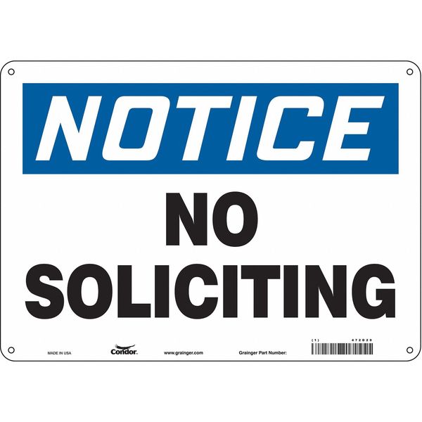 SKU G5059037Categories SafetyDescription Safety Sign, Horizontal Rectangle, Number of Printed Sides 1, English, Sign Legend No Soliciting, Sign Legend Background Color White, Sign Legend Style TextgraingerSKU: 472D20, mscSKU: , zoro_no: G5059037, mongo_id: 65bbe7649a749db822734014