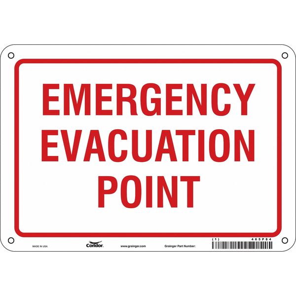 Safety Sign, 7 in Height, 10 in Width, Aluminum, Vertical Rectangle, English, 465P84SKU G5643449Categories SafetyDescription Safety Sign, Vertical Rectangle, Number of Printed Sides 1, English, Sign Legend Emergency Evacuation Point, Sign Legend Background Color White, Sign Legend Style TextgraingerSKU: 465P84, mscSKU: , zoro_no: G5643449, mongo_id: 65bbe7649a749db822733fd1