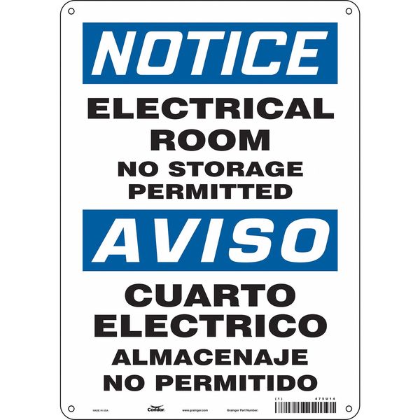 SKU G5781927Categories SafetyDescription Safety Sign, Vertical Rectangle, Number of Printed Sides 1, English, Spanish, Sign Format Traditional OSHA, Sign Legend Electrical Room No Storage Permitted/Cuarto Electrico Almacenaje No Permitido, Sign Legend Background Color White, Sign Legend Style TextgraingerSKU: 475U14, mscSKU: , zoro_no: G5781927, mongo_id: 65bbe7649a749db82273418f