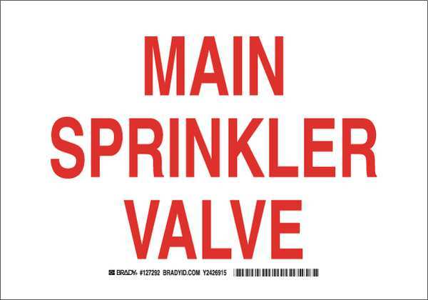 SKU G7377577Categories SafetyDescription Fire Sprinkler Sign, Sign Subject Matter Fire Equipment, Height 7 in, Width 10 in, Sign Material Aluminum, Sign Mounting Style With Mounting Holes, Header No Header, Legend Main Sprinkler Valve, Printed Language English, Sign Shape Rectangle$18.56 / eachWeb price
