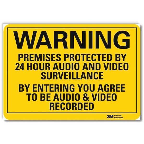 Warning Sign, Security, Black/Yellow, 10inWSKU G2278127Categories SafetyDescription Warning Sign, Vertical Rectangle, Number of Printed Sides 1, English, Sign Format Traditional OSHA, Sign Legend Premises Protected By 24 Hour Audio And Video Surveillance By Entering You Agree To Be Audio And Video Recorded, Sign Legend Background Color Orange, Sign Legend Style TextgraingerSKU: 35KM82, mscSKU: , zoro_no: G2278127, mongo_id: 65bbe7649a749db822733cf8