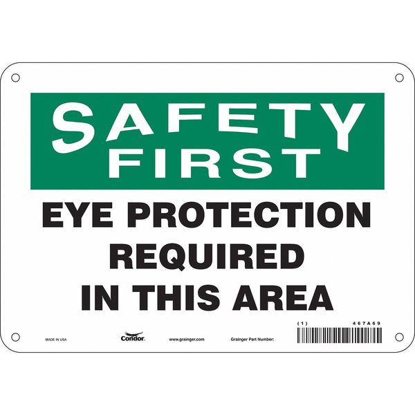 SKU G5071619Categories SafetyDescription Safety Sign, Vertical Rectangle, Number of Printed Sides 1, English, Sign Format Traditional OSHA, Sign Legend Eye Protection Required In This Area, Sign Legend Background Color White, Sign Legend Style TextgraingerSKU: 467A69, mscSKU: , zoro_no: G5071619, mongo_id: 65bbe7463aaddbd5a908530f