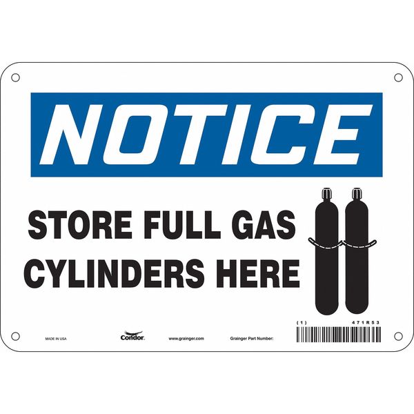 Safety Sign, 7 in Height, 10 in Width, Aluminum, Vertical Rectangle, English, 471R53SKU G5568138Categories SafetyDescription Safety Sign, Vertical Rectangle, Number of Printed Sides 1, English, Sign Format Traditional OSHA, Sign Legend Store Full Gas Cylinders Here, Sign Legend Background Color White, Sign Legend Style Symbol and TextgraingerSKU: 471R53, mscSKU: , zoro_no: G5568138, mongo_id: 65bbe7463aaddbd5a90853fa