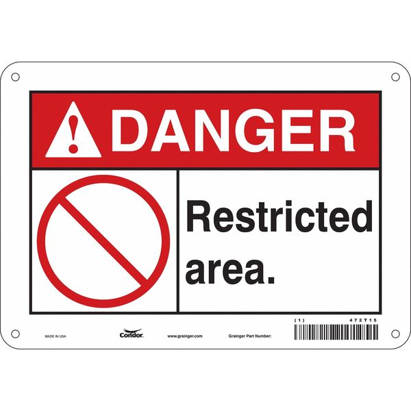 Safety Sign, 7 in Height, 10 in Width, Aluminum, Vertical Rectangle, English, 472T15SKU G5819182Categories SafetyDescription Safety Sign, Vertical Rectangle, Number of Printed Sides 1, English, Sign Format ANSI/OSHA Format, Sign Legend Restricted Area., Sign Legend Background Color White, Sign Legend Style Symbol and TextgraingerSKU: 472T15, mscSKU: , zoro_no: G5819182, mongo_id: 65bbe7463aaddbd5a90853d7