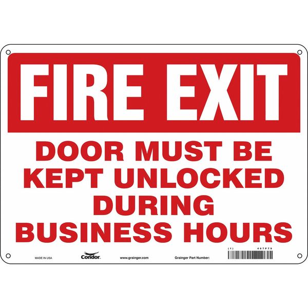 SKU G5241089Categories SafetyDescription Safety Sign Emergency Exit, Horizontal Rectangle, Number of Printed Sides 1, English, Sign Format Other Format, Sign Legend Door Must Be Kept Unlocked During Business Hours, Sign Legend Background Color Red, White, Sign Legend Style TextgraingerSKU: 467P79, mscSKU: , zoro_no: G5241089, mongo_id: 65bbe7463aaddbd5a90854c1