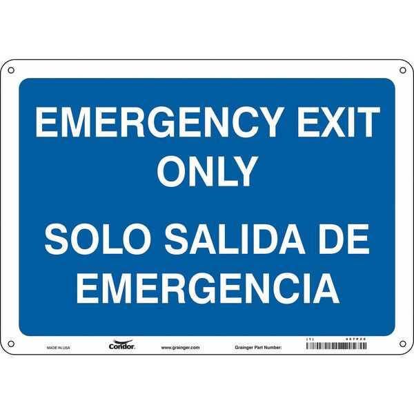 Safety Sign, 10 in x 14 in, AluminumSKU G5102522Categories SafetyDescription Safety Sign Emergency Exit, Horizontal Rectangle, Number of Printed Sides 1, English, Spanish, Sign Legend Emergency Exit Only/Solo Salida De Emergencia, Sign Legend Background Color Blue, Sign Legend Style TextgraingerSKU: 467P20, mscSKU: , zoro_no: G5102522, mongo_id: 65bbe7463aaddbd5a90854a6