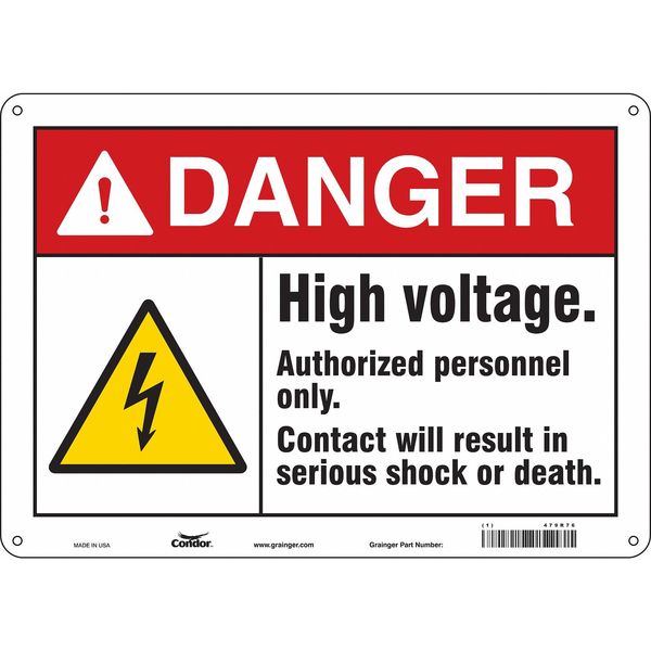 SKU G5886647Categories SafetyDescription Safety Sign, Horizontal Rectangle, Number of Printed Sides 1, English, Sign Format ANSI/OSHA Format, Sign Legend High Voltage. Authorized Personnel Only. Contact Will Result In Serious Shock Or Death., Sign Legend Background Color White, Sign Legend Style Symbol and TextgraingerSKU: 479R76, mscSKU: , zoro_no: G5886647, mongo_id: 65bbe7463aaddbd5a908547c