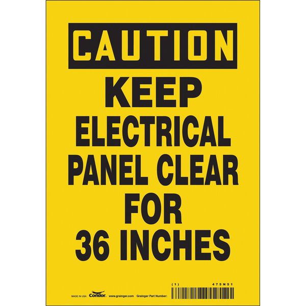 Safety Sign, 10 in Height, 7 in Width, Vinyl, Horizontal Rectangle, English, 475N51SKU G5089021Categories SafetyDescription Safety Sign, Horizontal Rectangle, Number of Printed Sides 1, English, Sign Format Traditional OSHA, Sign Legend Keep Electrical Panel Clear For 36 Inches, Sign Legend Background Color Yellow, Sign Legend Style TextgraingerSKU: 475N51, mscSKU: , zoro_no: G5089021, mongo_id: 65bbe7463aaddbd5a9085490