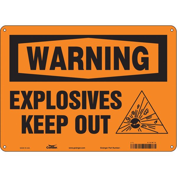 Safety Sign, 10 in Height, 14 in Width, Aluminum, Horizontal Rectangle, English, 470M75SKU G5282827Categories SafetyDescription Safety Sign, Horizontal Rectangle, Number of Printed Sides 1, English, Sign Format Traditional OSHA, Sign Legend Explosives Keep Out, Sign Legend Background Color Orange, Sign Legend Style Symbol and TextgraingerSKU: 470M75, mscSKU: , zoro_no: G5282827, mongo_id: 65bbe7463aaddbd5a90854ab