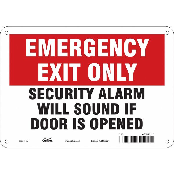Safety Sign, 7 in Height, 10 in Width, Aluminum, Vertical Rectangle, English, 473F27SKU G5615668Categories SafetyDescription Safety Sign, Vertical Rectangle, Number of Printed Sides 1, English, Sign Legend Security Alarm Will Sound If Door Is Opened, Sign Legend Background Color Red, White, Sign Legend Style TextgraingerSKU: 473F27, mscSKU: , zoro_no: G5615668, mongo_id: 65bbe7463aaddbd5a90854d9