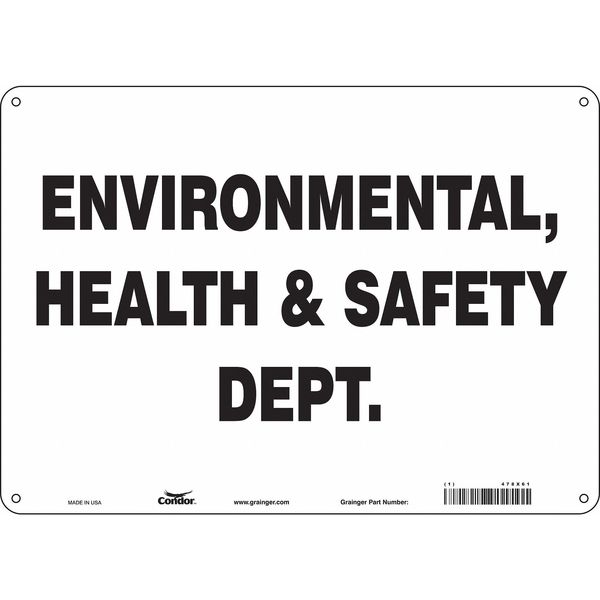 Safety Sign, 10 in Height, 14 in Width, Aluminum, Horizontal Rectangle, English, 478X61SKU G5900172Categories SafetyDescription Safety Sign, Horizontal Rectangle, Number of Printed Sides 1, English, Sign Format Other Format, Sign Legend Environmental, Health & Safety Dept., Sign Legend Background Color White, Sign Legend Style TextgraingerSKU: 478X61, mscSKU: , zoro_no: G5900172, mongo_id: 65bbe7463aaddbd5a90853aa